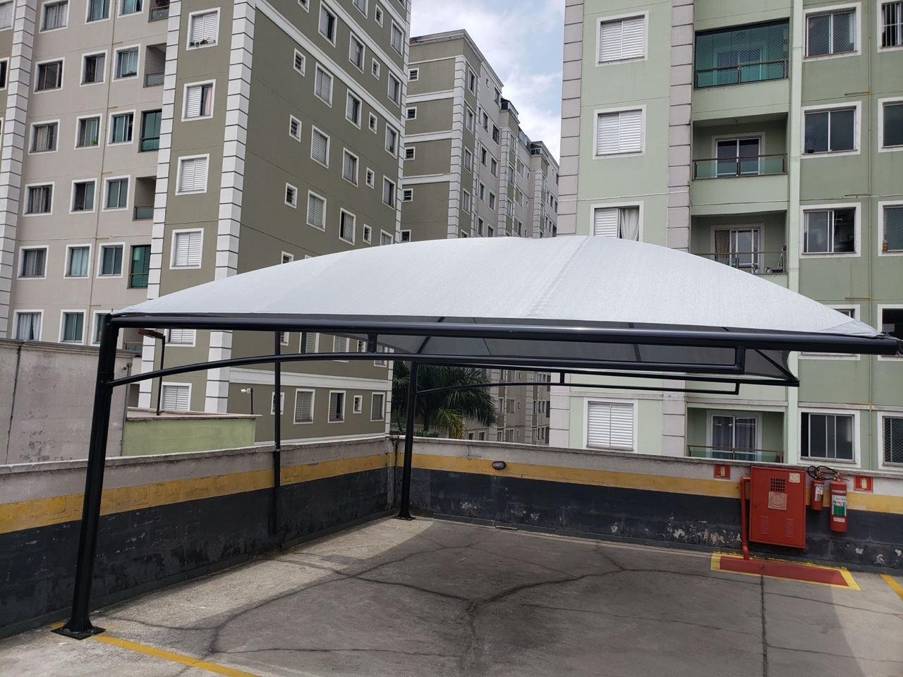 Solução ideal para sombreamento de automóveis, proteção de áreas de lazer e quadras esportivas.